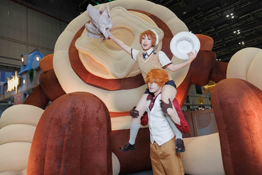 “如果要说原神FES的关键词,我想到了这几个词:沉浸、互动与约定。”米哈游《原神》市场负责人谢其良介绍,嘉年华现场高度还原了《原神》中的经典场景,以蒙德、璃月、稻妻、须弥、枫丹为蓝图,玩家作为“旅行者”,在展会入口领取冒险手册后,即可踏入现实中的“提瓦特大陆”,完成“每日委托”任务,领取限定周边。位于提瓦特大陆璃月区域的“翘英庄”是今年年初新推出的地图,融合中华传统文化的建筑风格深受玩家好评,也在此次嘉年华搭建展示。