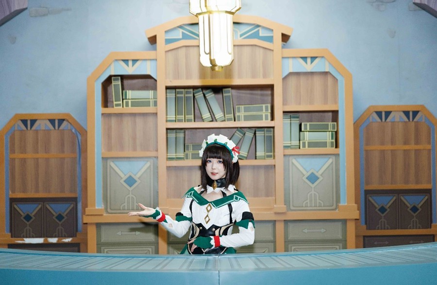 身材高挑的“四条真绪”COS成娜维娅的形象,走在人群中很是惹眼。“四条真绪”今天9点多就到了馆里,到了下午,来合影的观众已经数不过来。“四条真绪”全套服装都在淘宝购买,为了造型更加还原,整个COS成本加起来超过一千元。