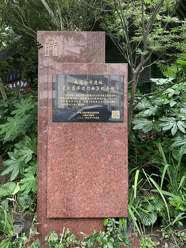 原址为荆州路405号。在这里,一批文艺战士们,怀揣爱国梦与激情,为抗战发声、为民族的危亡发声、为民众的觉醒而发声,拍摄了《风云儿女》等多部影片,并在此灌制了《义勇军进行曲》唱片,这里记录着中国电影史和中国革命的重要历史。