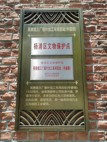 长阳路许昌路口的这幢砖红色三层楼房,曾是英美烟草公司专门加工烟叶的车间。它是一幢典型的现代主义工业建筑。造型简洁,气韵典雅,不乏文艺气息。2015年,这里以“中华盛世”之意正式命名华盛楼。内部是“中华”品牌文化展示厅,通过4D影院的沉浸式观览可以了解探索我国近现代工业的发展历程。