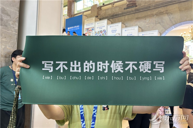 “这个需求做不了”的帆布袋,“写不出的时候不硬写”的键盘垫,“600号出院留念”的手机套……几乎每个文创产品都自带“梗”。现场询价声此起彼伏,有观众说:“这些文创引发我们打工人的共鸣,既有趣又实用。”