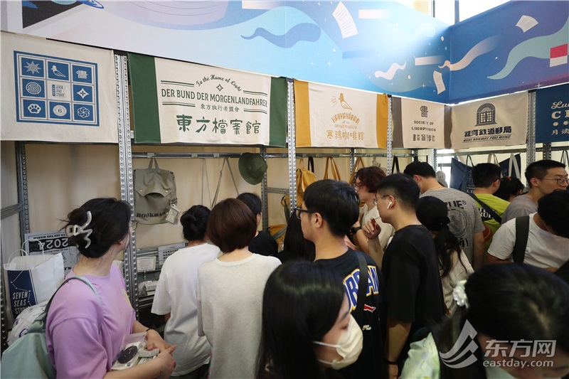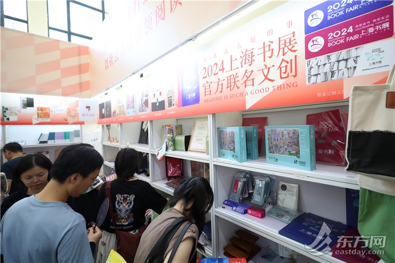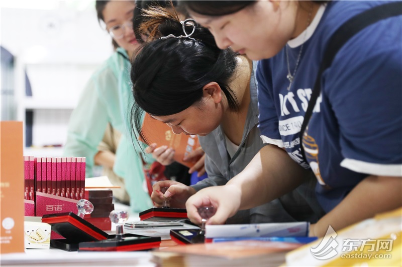 东方网记者柏可林、熊芳雨8月18日摄影报道:上海书展主会场上海展览中心,最近人气爆棚。走进展馆西一馆的一楼,观众立刻就被琳琅满目的文创展品“硬控”。