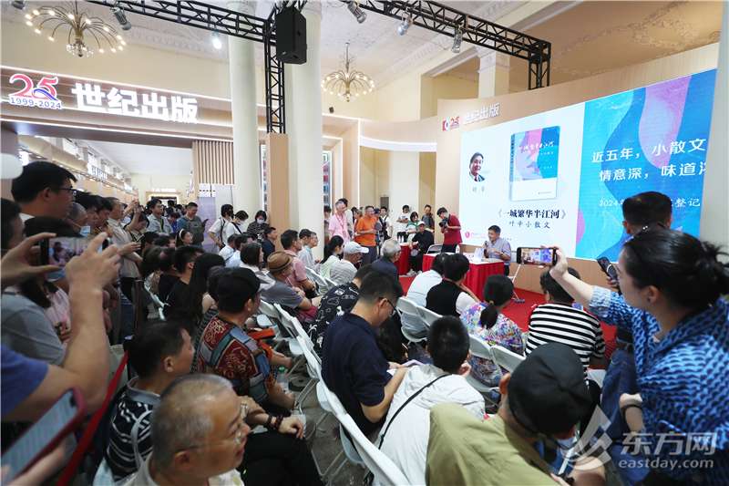 记者见到方和时,他正在在世纪出版馆活动区,上海远东出版社《一城繁华半江河——叶辛小散文》读者分享会上,叶辛正在台上滔滔不绝讲述读书心得,旁边的读者已经排起长龙,边听边等着一会的作家签售。