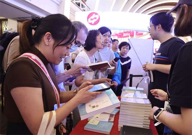 排队签售夜光杯新书的读者在中心活动区“绕场一周” 视频摄制 张涛