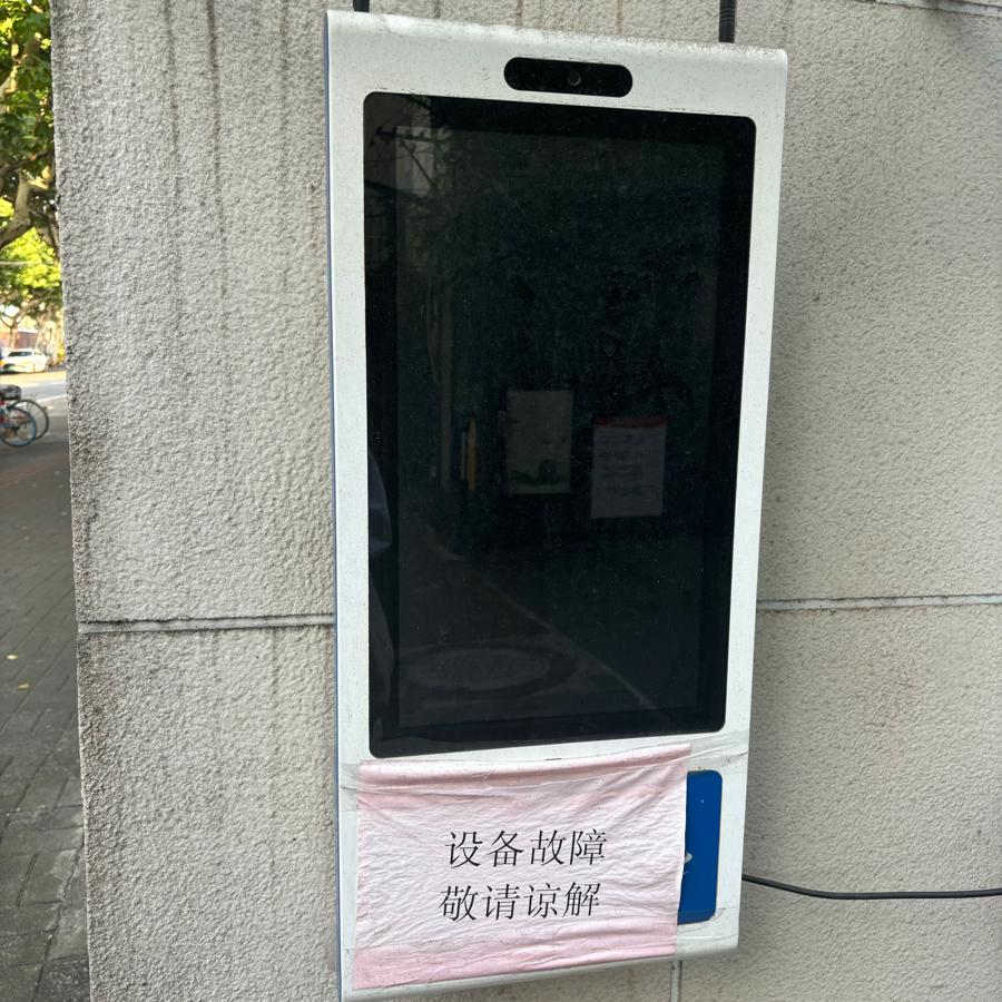 位于虹桥街道居民区门口的故障智慧屏。