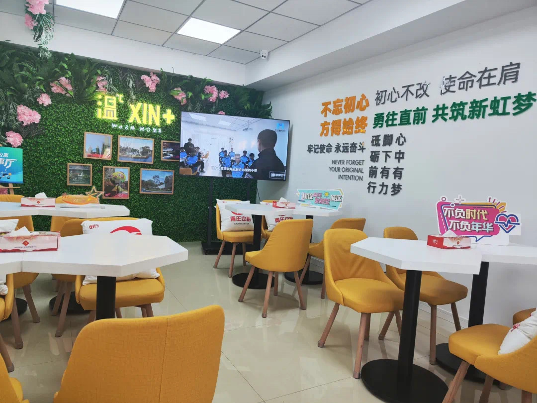 中航公寓设置了200平方米的党群服务站,并打造时光漫谈+、静悟笔耕+、温馨烟火+、“小哥来吧”等功能空间。