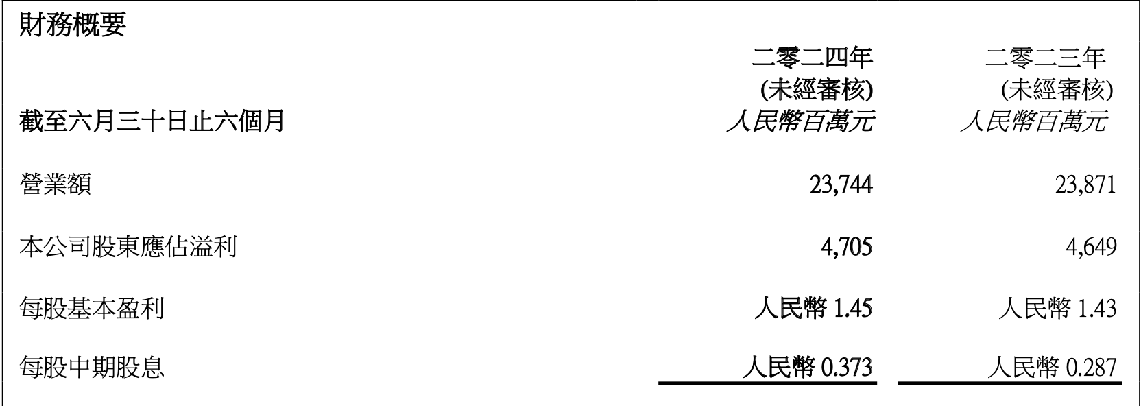 财报显示,华润啤酒将于2024年10月23日派发中期股息每股0.373元。