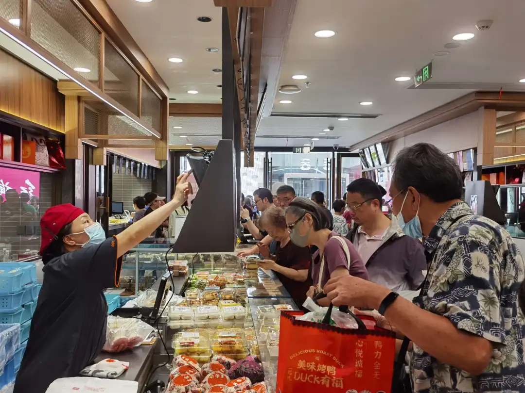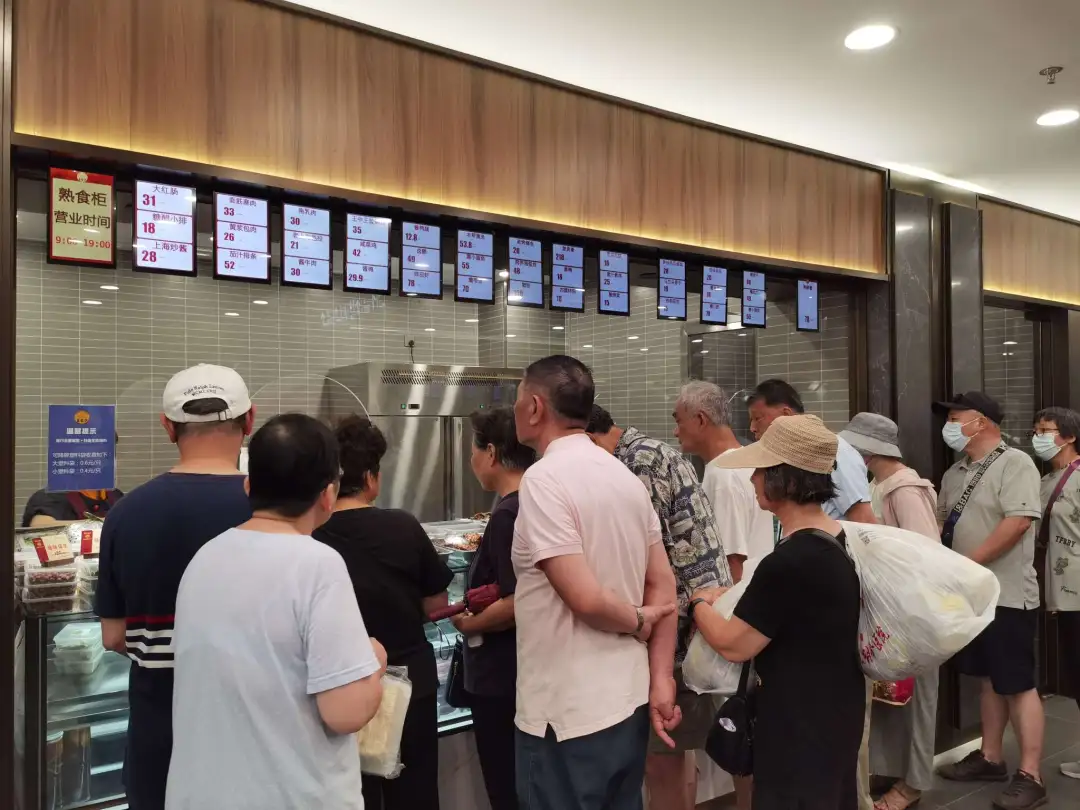 记者注意到,和整修前一样,一楼是可以购买各种时令产品的外卖柜台,以及老客户特别喜欢的各式浇头面和小吃堂食。手工制作的馒头、鲜美的月饼、每天新鲜烧制的上海熟菜和本帮菜肴,还有糯糯叽叽的糕团等等,为市民呈现品种丰富的美食。