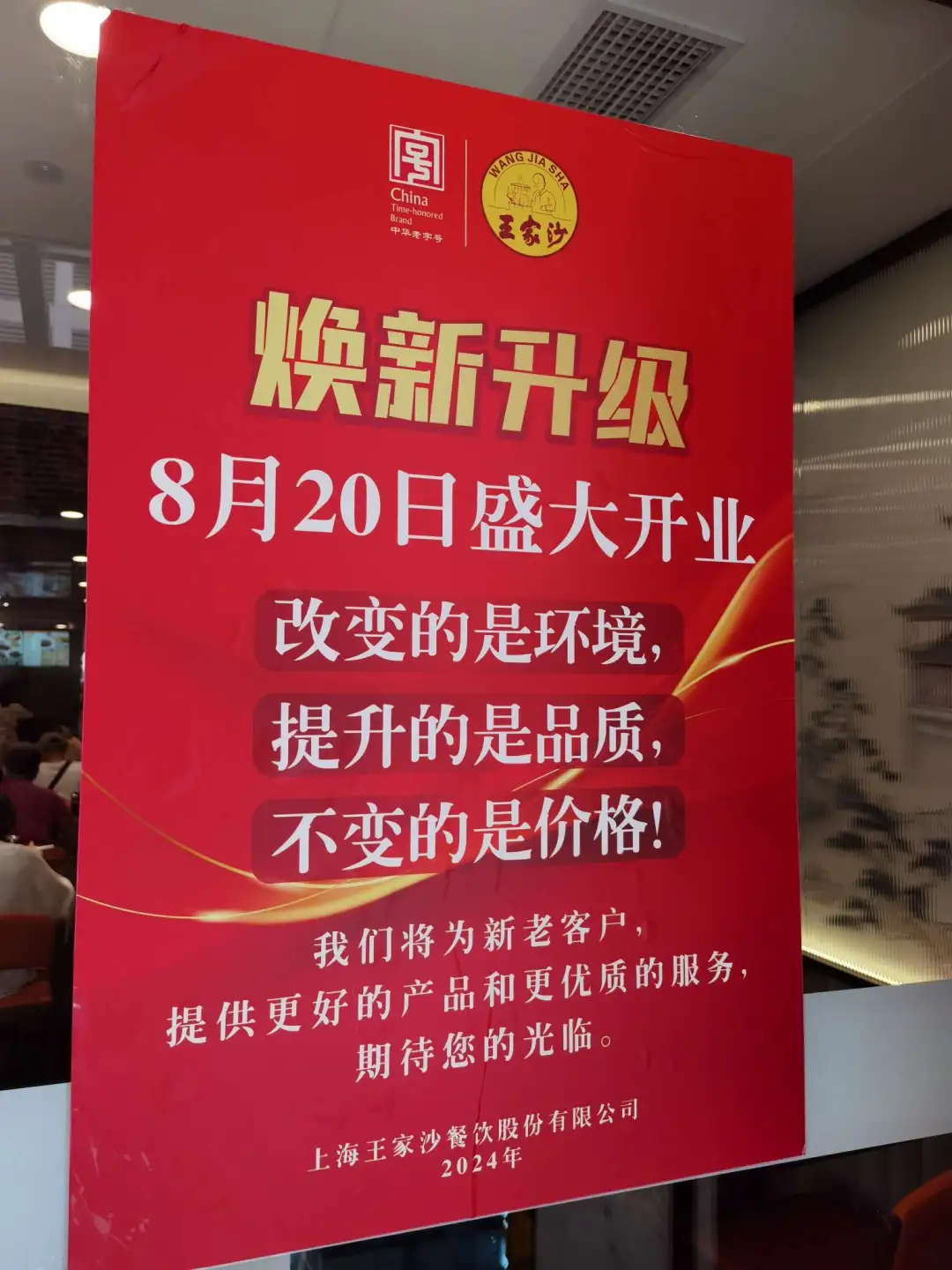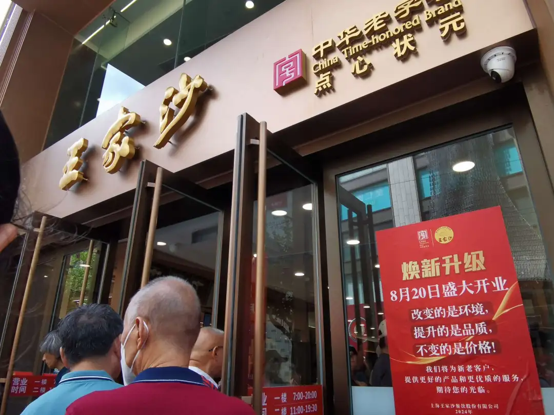 上午10点,记者来到王家沙总店,只见店门口有不少市民正在排队购买包子等点心。店门口张贴了焕新升级8月20日开业的告示。