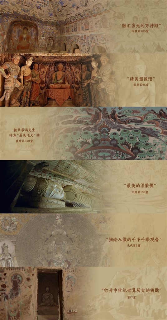 市民游客还可在本次大展中欣赏到1:1原窟复刻的敦煌石窟群,包括被称为“融汇多元的万神殿”的西魏第285窟、“精美塑像馆”盛唐第45窟、被常书鸿先生称为“最美飞天”的盛唐第320窟、“最美的涅槃佛”中唐第158窟、“描绘入微的千手千眼观音”元代第3窟和“打开中世纪世界历史的钥匙”的第17窟。