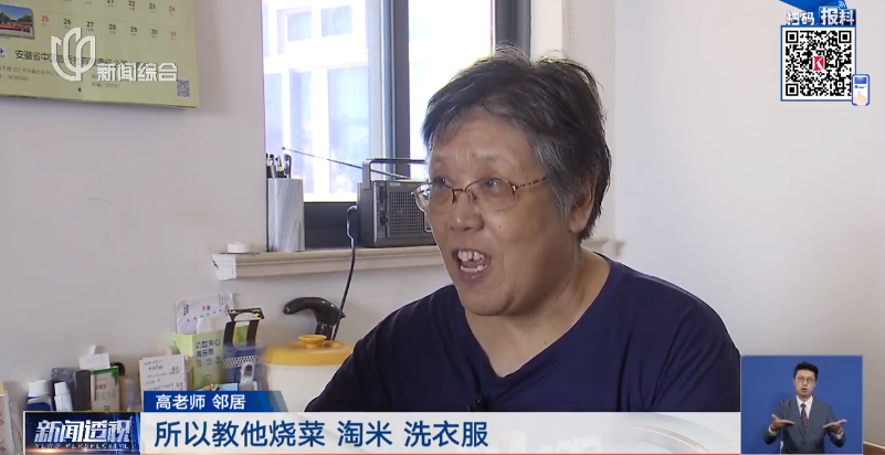 邻居高老师:因为接触社会少,家里挺宝贝的,家务都不知道怎么做。教他养成一个习惯,就是一定要自己能自理,教他烧菜、淘米、洗衣服,两三个月人就开始改变了,开朗了,家里有这么一个人,负担很重的,不仅仅是经济上。