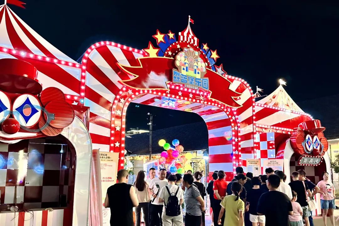 夜幕降临,微风吹散白天的闷热,在光影交织下,云间粮仓更显魅力。作为松江夜间消费12场景之一,云间粮仓利用云间大道打造“森蓝堡乐园”,开启夏日狂欢季。