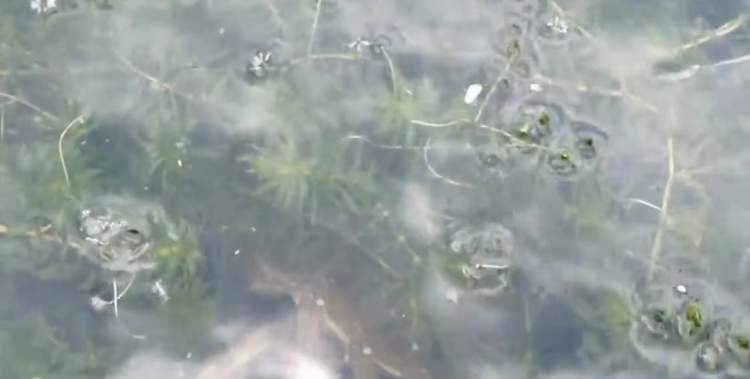 她介绍,每年过完年,蟹塘就开始种植水草,先种不怕冷的伊乐藻,一个月后再种不怕热的轮叶黑藻,“到了夏季,覆盖在水面上的水草就好像给大闸蟹撑起了一把遮阳伞。水草生长需要时间,所以每年我们都按照持续高温的预案来种水草,宁可多种一些,如果到时候没有持续高温,可以去除一些水草,不影响大闸蟹出来取食及活动,如果少了,是来不及补种的。”