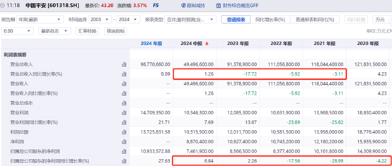 连续三年为负后,中国平安2024中期营收增速转正