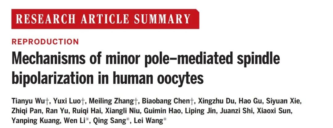 2024年8月23日,王磊团队在《科学》发文“Mechanisms of minor pole-mediated spindle bipolarization in human oocytes”。 本文图片 复旦上医供图
