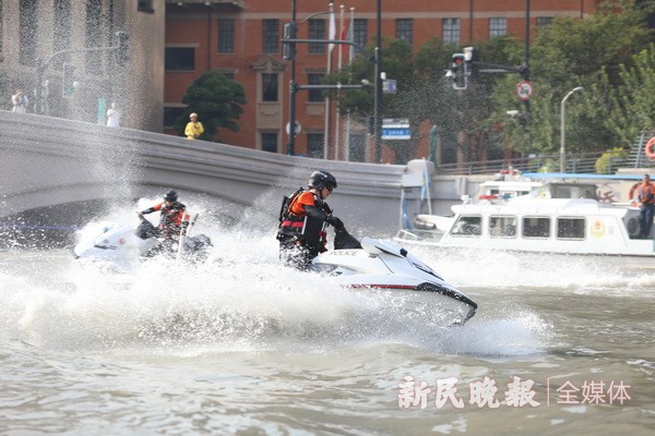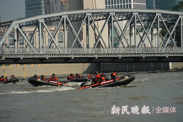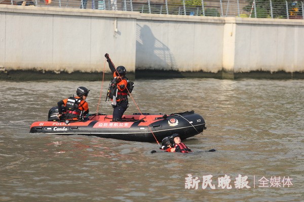 “外白渡桥附近水域有人员落水,请立即前往开展救援行动!”昨天,上海市公安局边防和港航公安分局水上应急救援队在苏州河外白渡桥水域开展第二次水上大练兵活动。随着队员将“落水者”拉上救援艇,顺利完成了救援任务,得到现场围观群众的阵阵掌声。