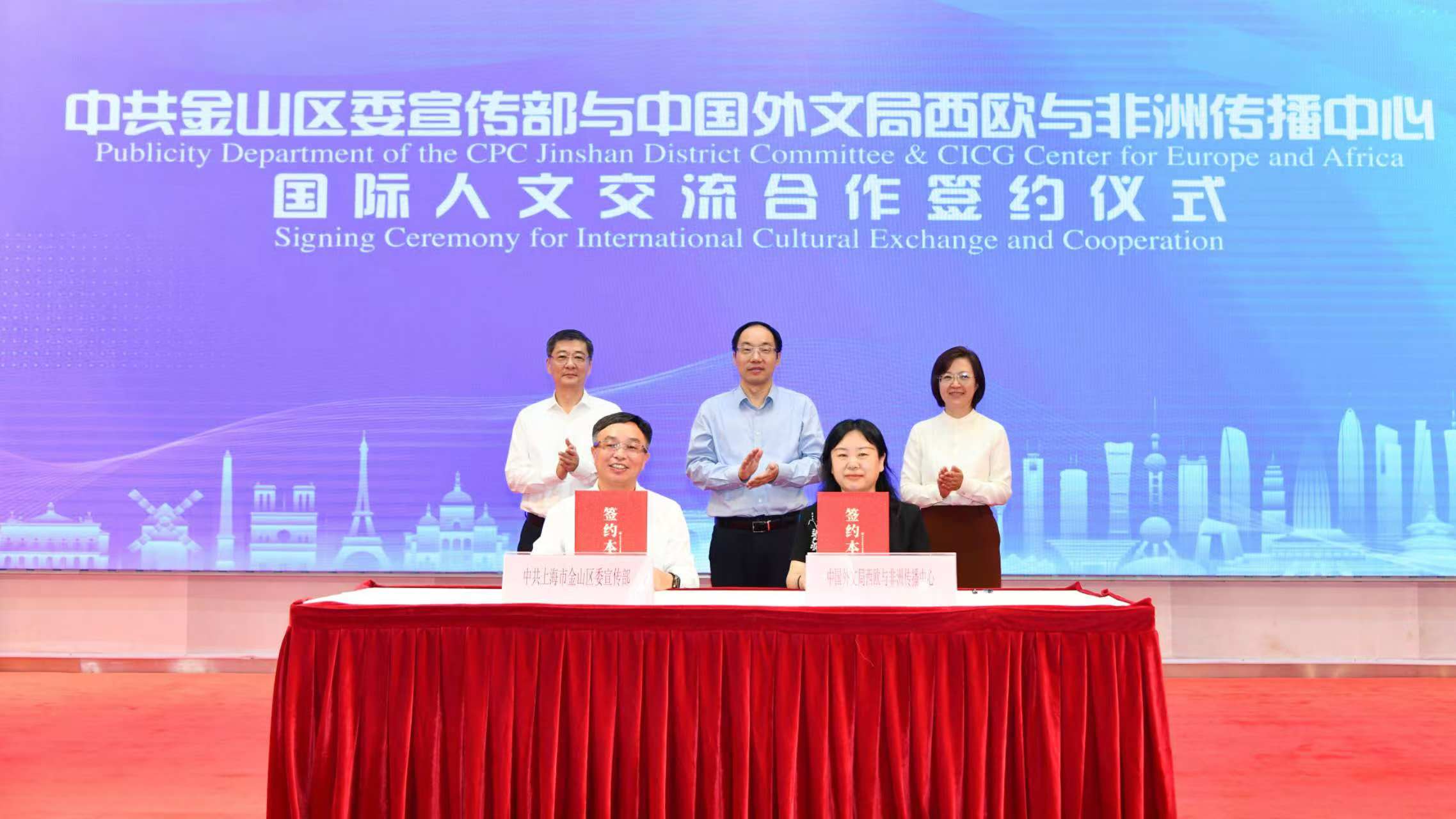 8月23日上午,中共上海市金山区委宣传部与中国外文局西欧与非洲传播中心国际人文交流合作签约仪式举行,正式宣布未来双方将在一系列人文交流、国际传播领域深化合作,共同描绘“上海湾区”金山区跨国界文化交融新篇章。