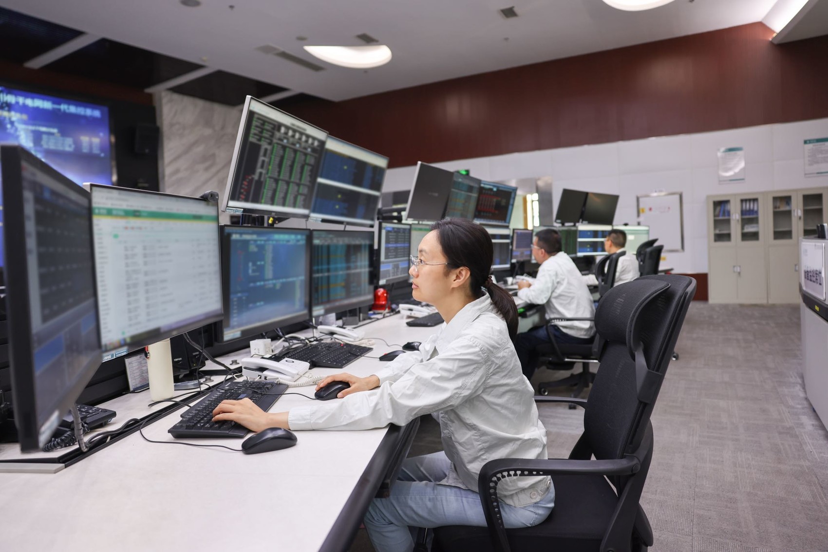 在国网四川超高压公司生产管控中心大厅,监控值班人员正在对四川主网设备开展高温特殊巡视。受访者供图