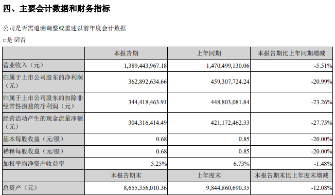 今年上半年,同花顺基本每股收益为0.68元/股,同比减少20%。截至报告期末,同花顺总资产为86.55亿元,较2023年末的98.45亿元资产总额减少12.08%。