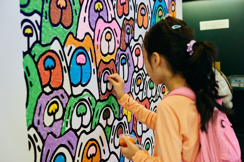 展览现场,一幅特别的黑色线稿的画作将成为连接艺术家与观众的桥梁。通过这个特别设置的互动环节,观众可以使用现场提供的超轻黏土,为这件线稿画作填色,亲手参与创作,体验从黑白到彩色的奇妙变化,享受这一既解压又充满创意的过程。这一创新举措不仅增强了展览的参与感,也让观众在创作中更加深入地理解艺术家的创作理念与情感寄托。