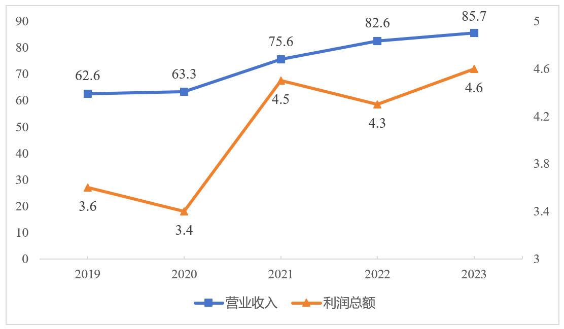 图2 2019—2023年全国国有控股企业营业收入和利润总额(万亿元)资料来源:中国政府网