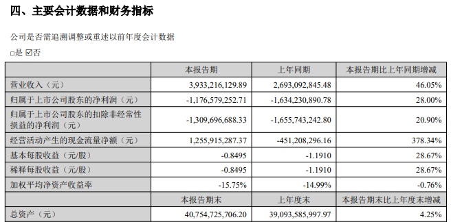 8月29日晚间,维信诺同时发布了2024年半年度报告,报告期内,公司营业收入39.33亿元,同比增加46.05%;归属于上市公司股东的净利润(下称“净利润”)为-11.77亿元,亏损收窄28%。