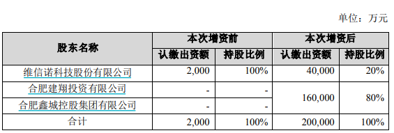 相关增资完成后,作为该生产线项目投资、建设、运营平台的合肥国显,维信诺的持股比例将从100%降至20%,合肥建祥投资和合肥鑫城的持股比例为80%。