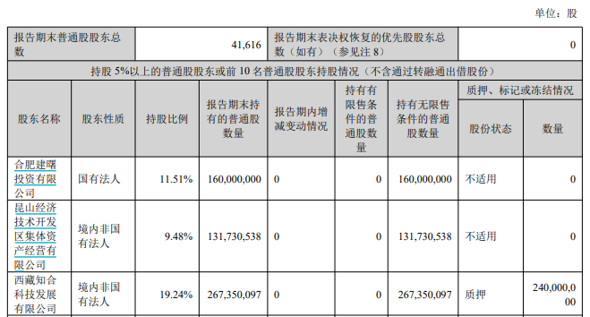 股权方面,公告显示,截至报告期末,维信诺持股比例在5%以上的股东共有3家。其中,西藏知合科技发展有限公司是公司第一大股东,持股比例为19.24%。