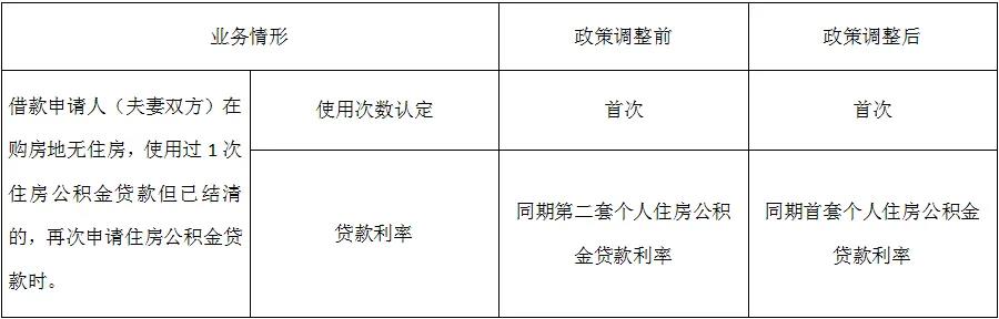 《关于完善首次使用住房公积金贷款政策的通知》提出,借款申请人(夫妻双方)在购房地无住房,使用过1次住房公积金贷款但已结清的,再次申请住房公积金贷款时,执行首次使用住房公积金贷款政策,贷款利率按同期首套个人住房公积金贷款利率执行。自2024年7月26日起施行,以业务受理时间为准。在2024年7月26日前已申请未发放且符合条件的个人住房公积金贷款按本政策执行。