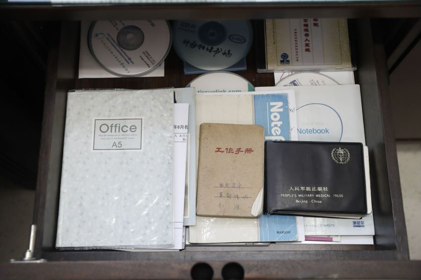 据海医大三院介绍,吴孟超生前办公室保留着原来的样子。办公桌玻璃台板下压着的吴孟超随手写下的小纸条,抽屉里有密密麻麻写满字的小笔记本,书柜里摆放着他的书籍和患者来信,墙上挂着患者和学生赠送的书法和绘画作品。写字台上叠放着数本年代久远的影集:一帧帧拍摄于上世纪六七十年代的黑白老照片,记录了中国早期医疗工作者珍贵的影像资料。