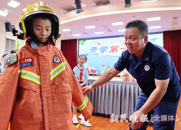 昨天是金山区部分学校返校日,区消防救援局联合区应急管理局、公安交警支队和海江集团救援队结合本区实际,在辖区海棠小学开展新学期“安全第一课”主题系列活动,通过现场教学展示和实战演练相结合的方式,增强学生的安全意识,提升自我保护能力。