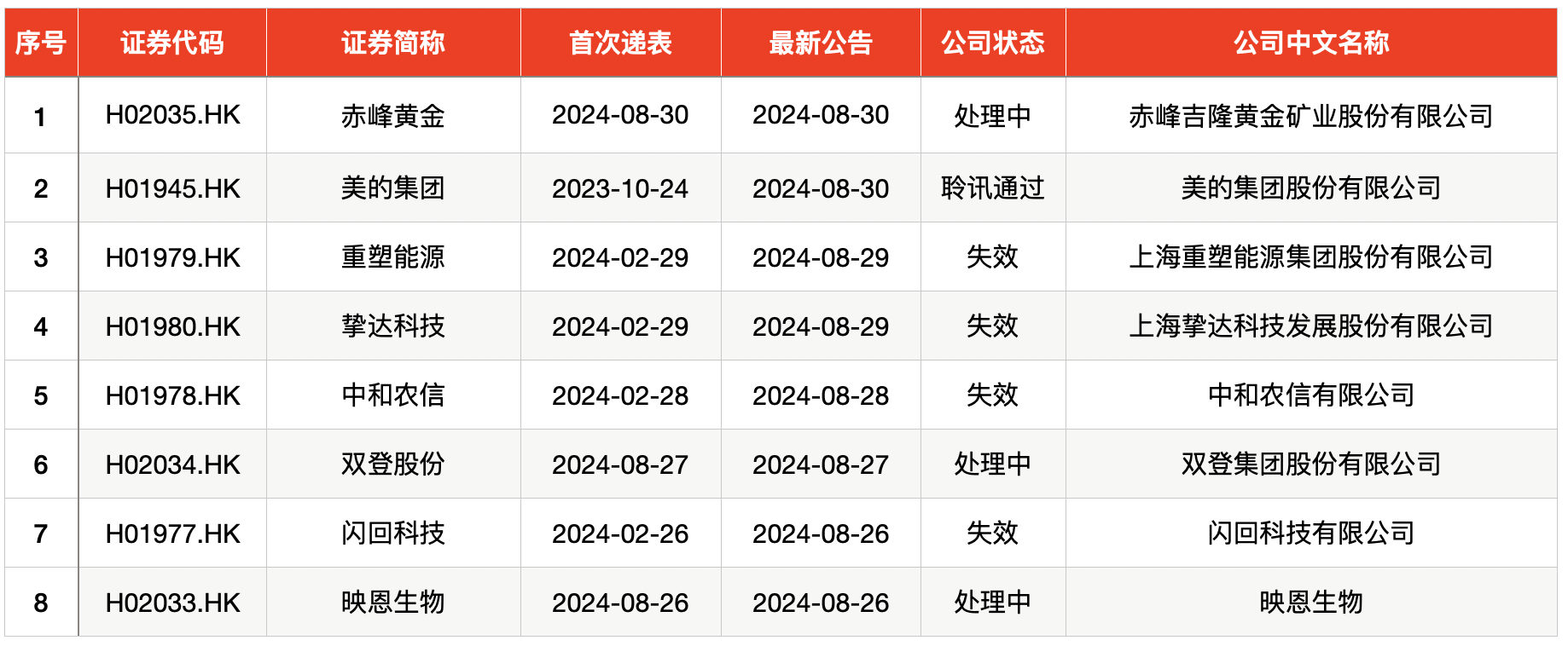上周,港股共有3只新股递交了招股书,其中,映恩生物、双登集团股份有限公司、赤峰吉隆黄金矿业股份有限公司均为首次递交。1家公司通过港交所聆讯,为美的集团股份有限公司(简称“美的集团”)。
