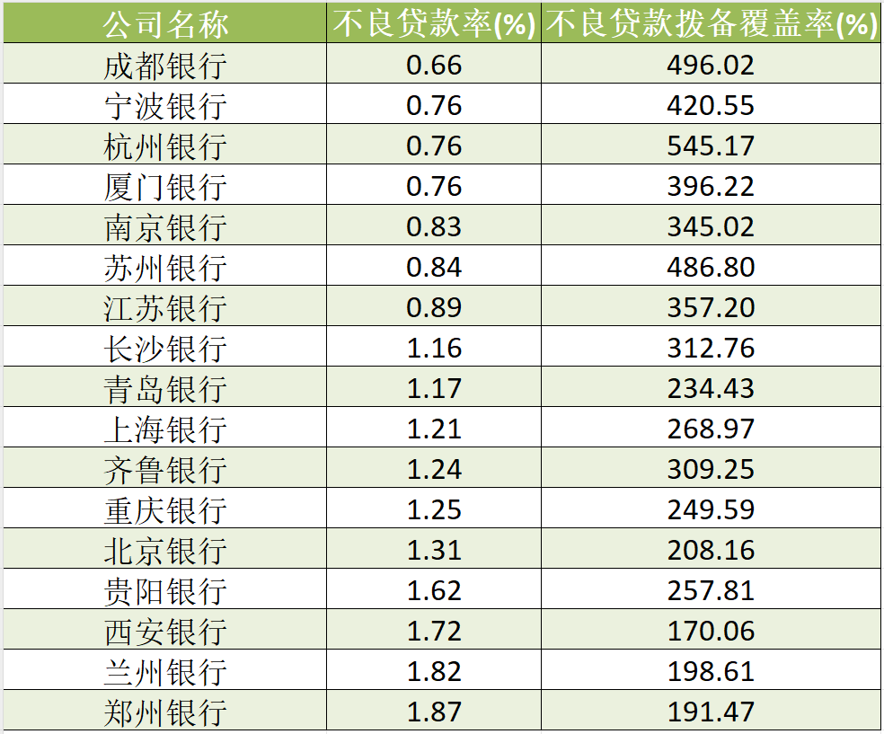截至2024年6月末,A股上市城商行资产质量 数据来源:Wind