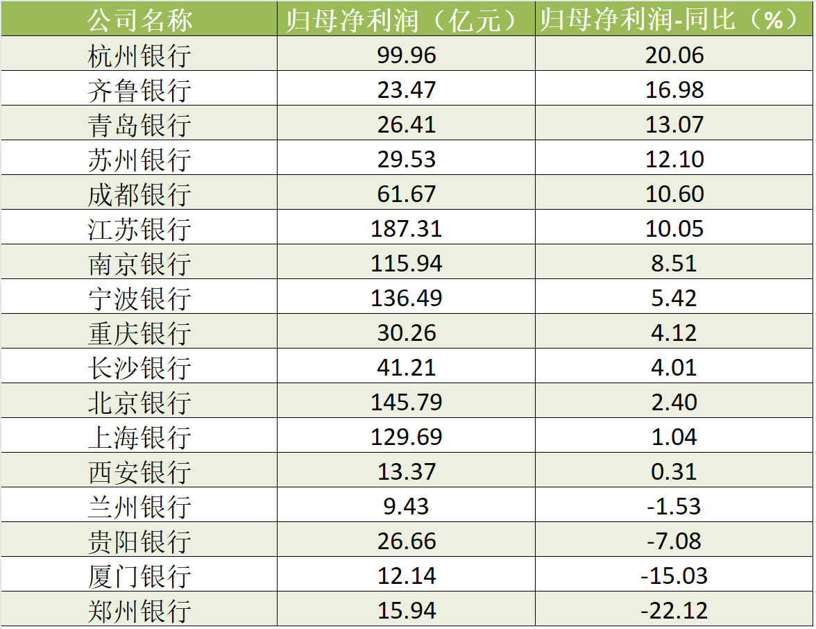 净利润增速总体放缓,杭州银行净利同比增逾20%
