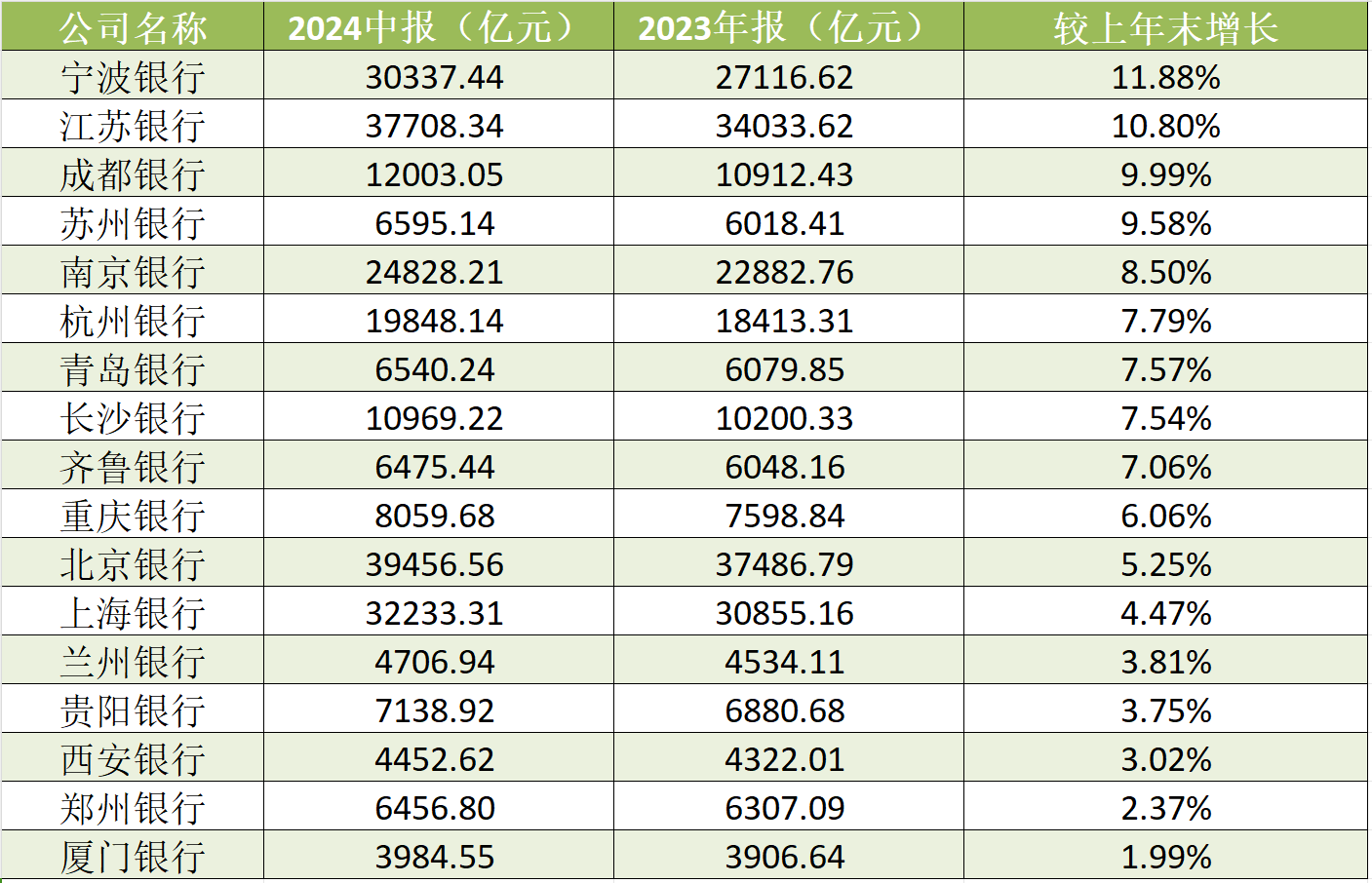2024年上半年,共有12家A股上市城商行营收实现增长,5家出现负增长,平均增速3.03%。