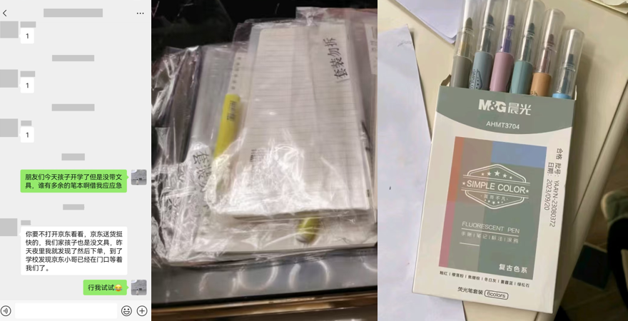 “你要不打开京东看看,京东送货挺快的,我们家孩子也是没文具,昨天夜里我就发现了然后下单,到了学校发现京东小哥已经在门口等着我们了。”在多方求助无果的情况下,微信群聊中的一条消息吸引了王女士的注意,随后她抱着试一试的心态打开了京东APP下单,付款页面显示9:00-15:00送达的提示让她安心不少,下单后的王女士将孩子送进教室并和老师说明情况后便火速赶往公司。下午两点,刚刚结束午休的王女士打开手机发现上午下单的文具显示已经送到,于是打电话和老师核实情况,才知道孩子已经开始用上了新文具。“真的太靠谱了,多亏了京东。”在京东211限时达服务的帮助下,王女士和孩子所遭遇的新学期“乌龙”事件最终得到了妥善地解决。