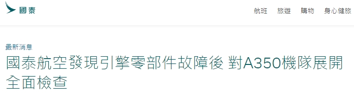 全球首例!国泰航空通报空客A350引擎零部件故障,欧洲航空安全局展开调查
