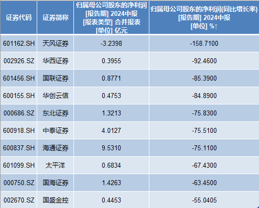 具体而言,天风证券净利润同比降幅高达158.71%,远超其他A股券商,上半年亏损3.24亿元。