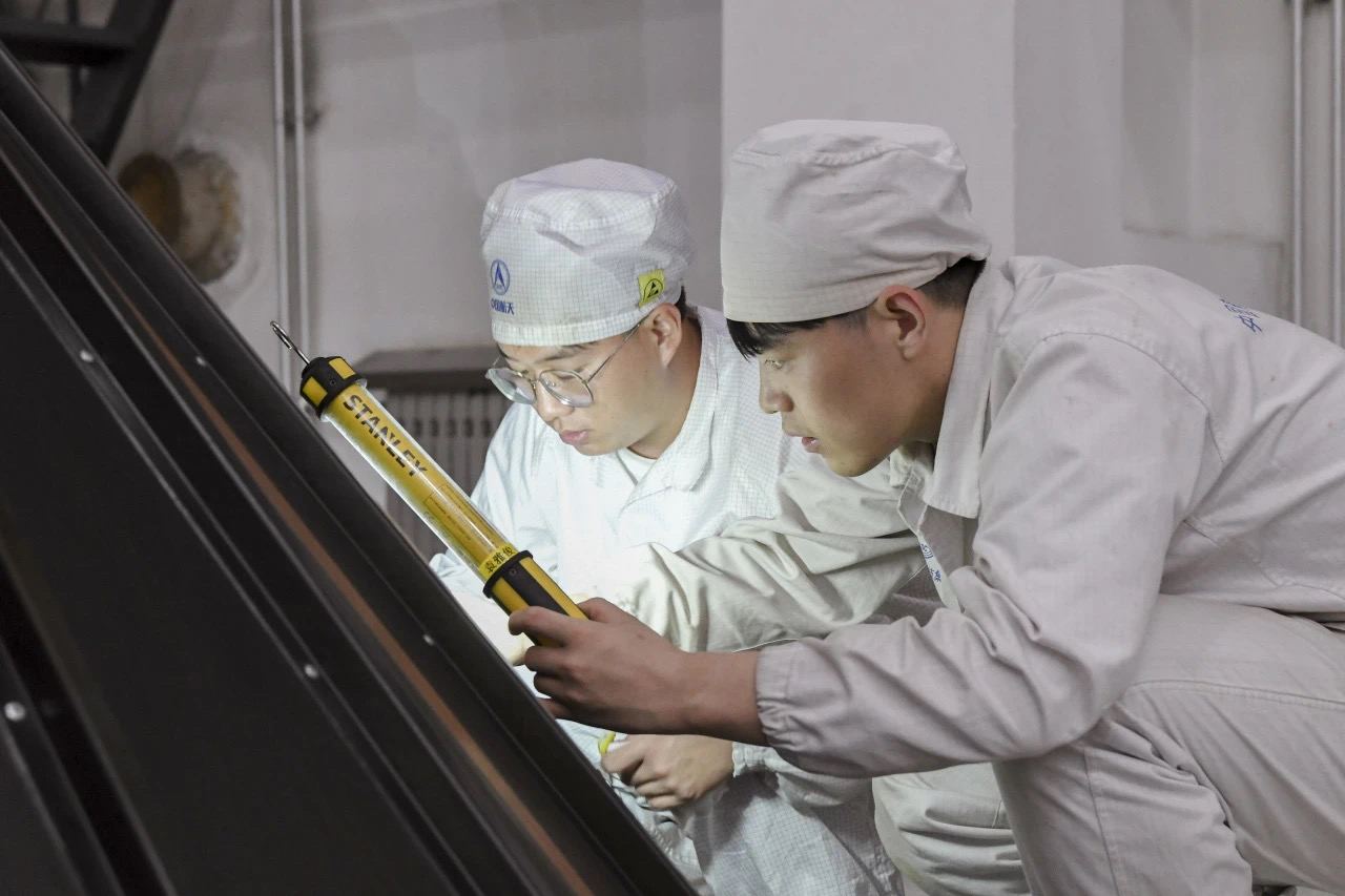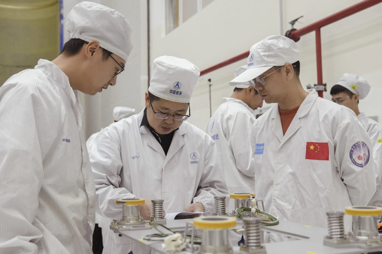 长征六号火箭团队在工作中。