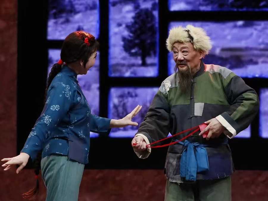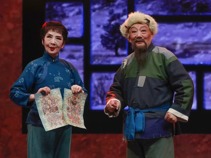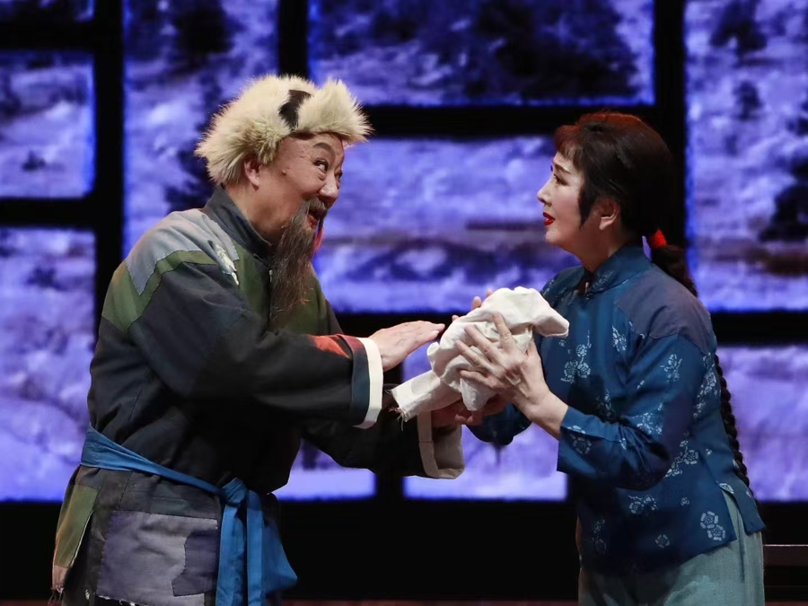 章晓申与妻子吴海燕一起演唱京剧《白毛女》中《扎红头绳》 卢雯摄