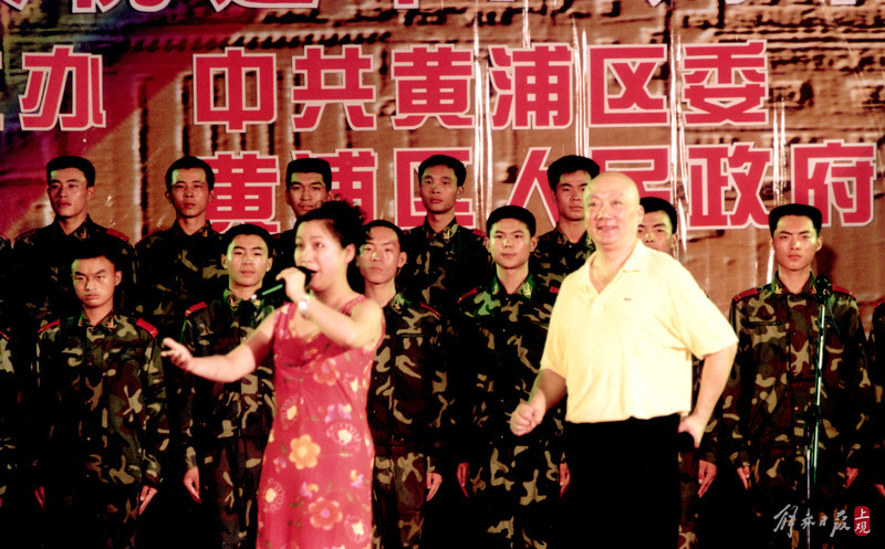 庆祝建军73周年军民联欢会在黄浦公园举行, 2000名黄浦区市民与陆海空指战员观看了演出。 战士与市民在观看上海京剧院胡璇、章晓申表演的京剧清唱《沙家浜》。 本报记者金定根摄