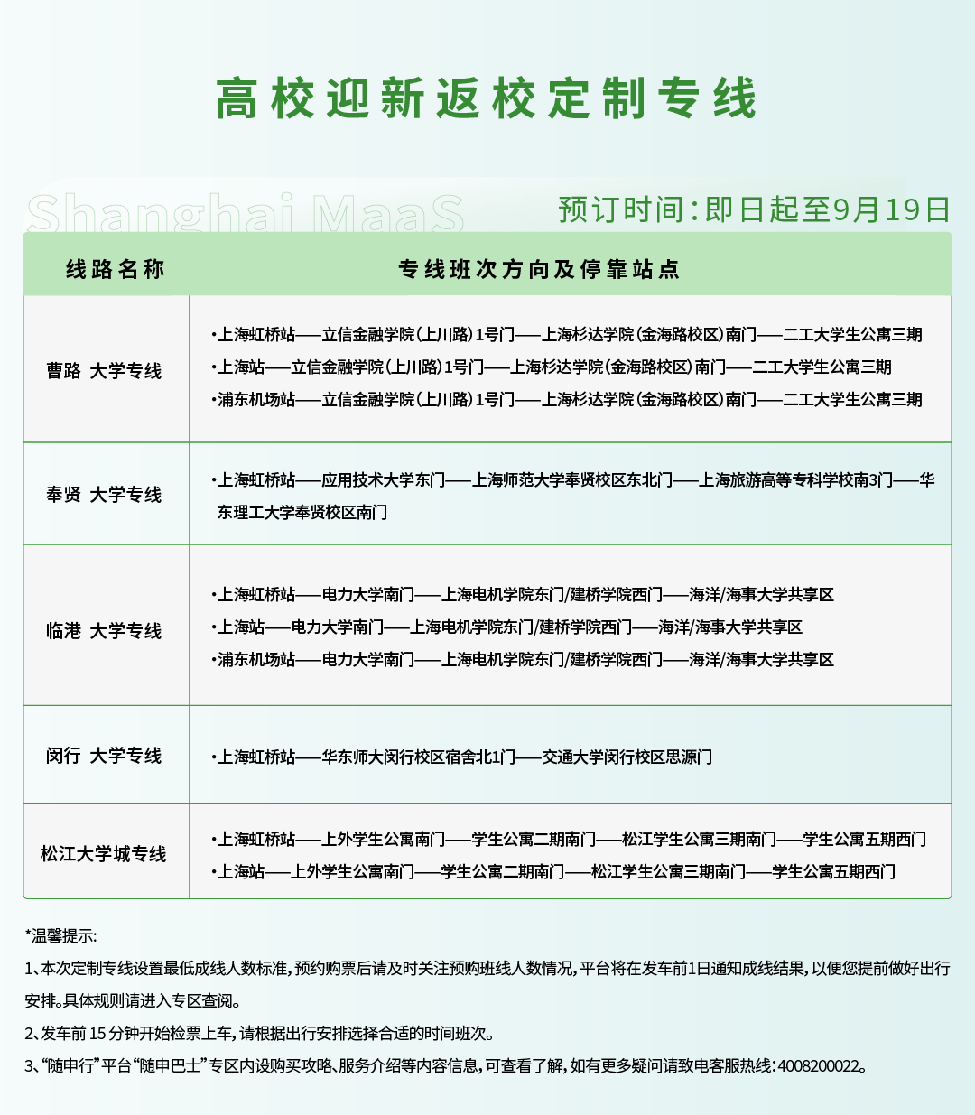 一站直达学校,上海“高校迎新返校定制专线”今起开行