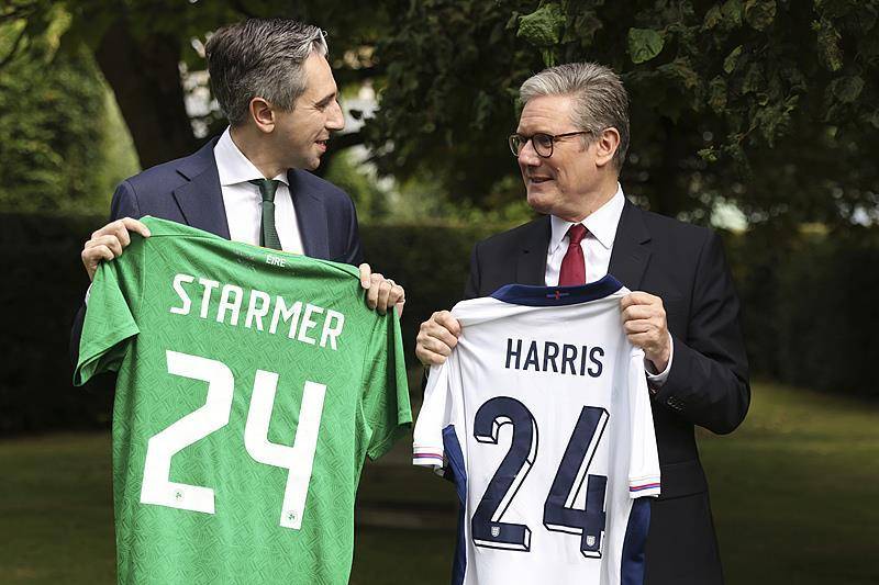 7日中午,哈里斯在爱尔兰首都都柏林的国宾馆迎接斯塔默,对后者表示“万分欢迎”。哈里斯说,双方都表示希望让英爱关系“走上新路径”,而彼此“最庄严的任务”是守护北爱尔兰和平成果。两人随后边散步边交谈,接着会见了爱尔兰商界代表,又共赴英杰华体育场观看了一场爱尔兰队与英格兰队的足球比赛。赛前,两人交换了后背印有各自姓氏的球衣。斯塔默是个足球迷,空闲时常踢球。
