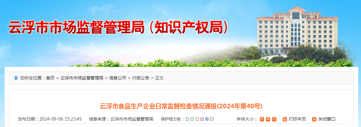广东省云浮市食品生产企业日常监督检查情况通报(2024年第40号)