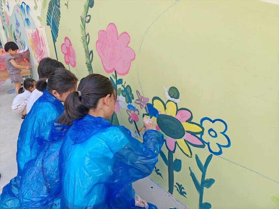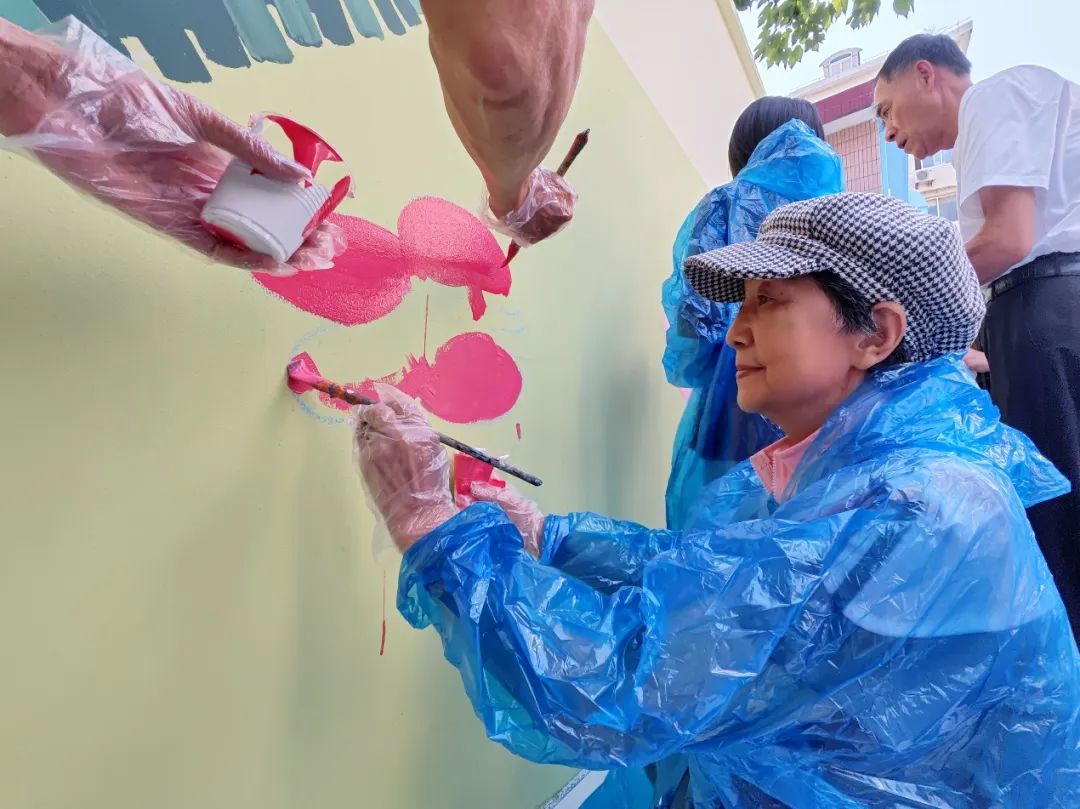 走进程桥二村的科普广场,旁边的围墙一改曾经的单调灰暗。老老少少端着颜料、举起笔刷,在墙上描绘着自己喜欢的图案。五彩的花卉、接住花瓣的绿叶、花朵上趴着的小蜗牛……居民们在此尽情发挥着想象力和创造力,让这面围墙显得生机勃勃。