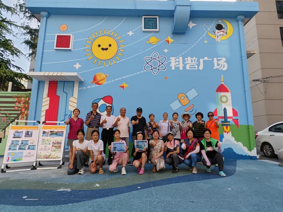 最终,集合孩子们的作品而形成的图案跃然“墙”上,成为居民们交口称赞的科普广场新标识。宇航员坐在月亮上钓星星、即将升空的火箭、沿着轨迹运行的太阳系行星……天马行空的想象从蓝图变为实景图,为科普广场增添了不少童趣。