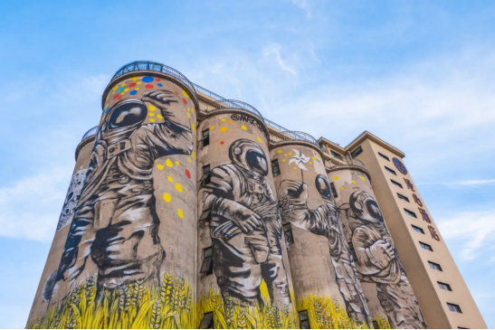 云间粮仓漫心酒店位于松江云间粮仓创意园内,是上海首座筒仓酒店。酒店造型独特,老粮仓与墙绘宇航员漫画相得益彰,形成了别具一格的艺术风格。房间布置温馨,舒适感十足,小住一晚,放松身心,再也不用赶行程,做个轻松的旅人吧!