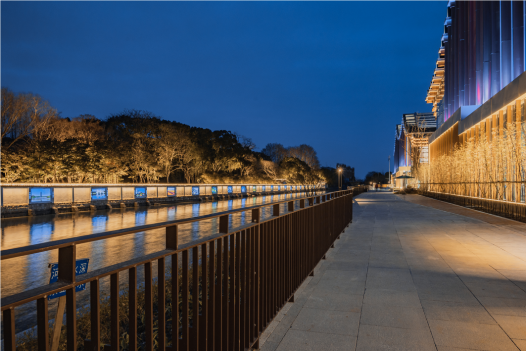 松江区作为分会场主题活动之一,光影节期间,将以“光影水韵”为主题,通过建筑灯光秀、倒映在河面的灯光艺术装置、地面水波纹互动装置,巧妙地将现代科技与传统文化相结合,使醉白池的古韵、人民河的现代风貌和云间会堂的新中式美学,在光影的映衬下交相辉映,展现出松江老城区更新后的新变化、新街景、新气象。
