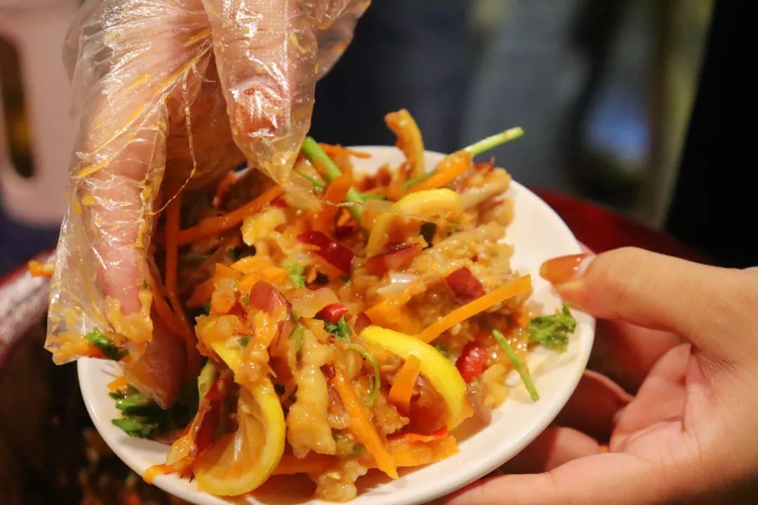 “云南舂菜中有一些当地特色的配料,比如说大香菜、酸柑汁,这些都是我们空运过来的,少了这些就少了灵魂……”9月6日晚6点,位于古华公园后门景迈森林教学点,《带你走进景迈山美食》较一般夜校课程,提前1小时开课,首节课教大家制作云南舂鸡爪,“早点开始,做好了大家就可以吃了。”授课老师鲍一丁介绍道。