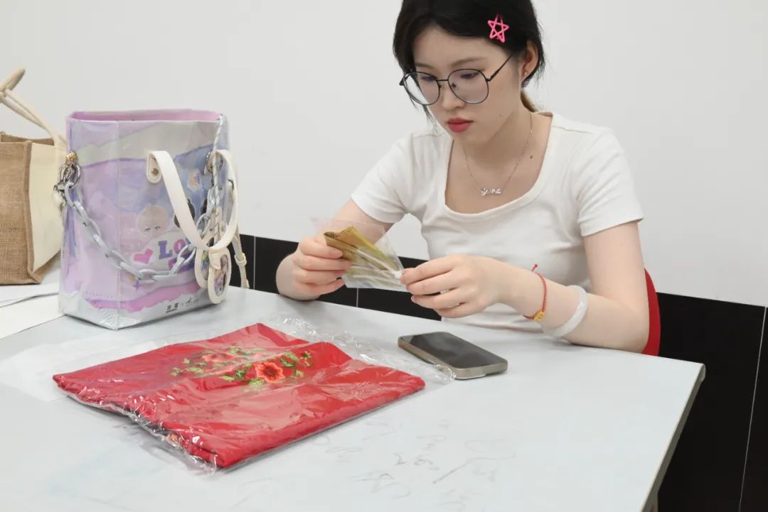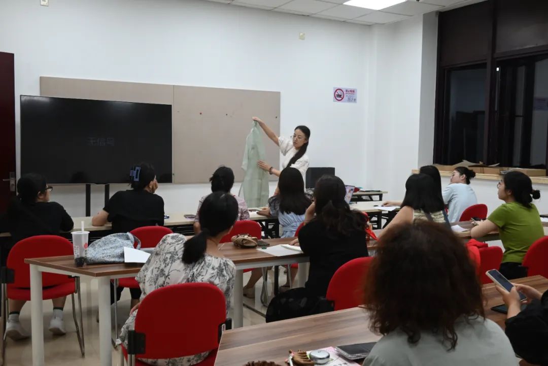 愿意教授、愿意分享,冯婧的真诚,在开班第一课上,就被学员敏锐地捕捉到。学员丁女士因家中从事服装相关工作,耳濡目染之下,从小对刺绣充满兴趣,并拥有日本手艺普及协会刺绣讲师(欧绣)证。课上也是目标明确,要来学习刺绣中的“滚针”技法,“冯老师很专业,人也很好,除了滚针,后面要教我们盘扣、古法浆糊制作等。像盘扣的话,我在外面专门进修过,5天时间,费用6000块。”而作为政府公益性项目,市民夜校的费用每期在500元。“性价比很高,我们很多学员都跟冯老师说,后面要继续跟着她学习。”